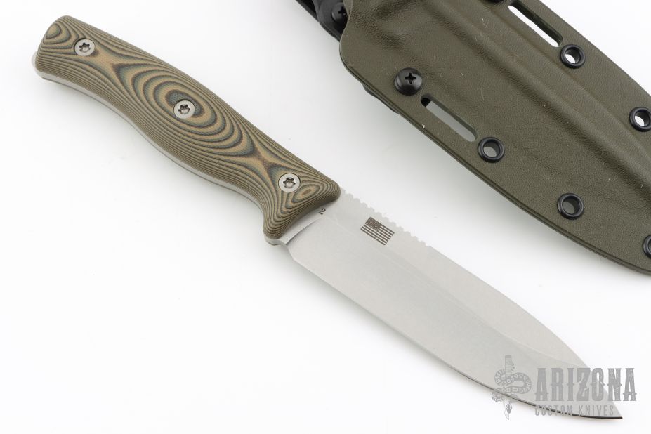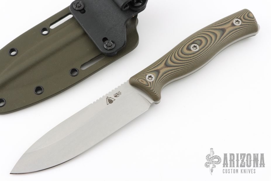 This GSO 4.7 from Survive Knives features a stonewashed drop point blade with notched thumbrest, .153" blade stock and 1.138" blade depth, full tang construction. The handle has camo G10 scales. Includes kydex sheath and original box. Excellent condition. Factory 2nd, but I can't see anything wrong with it.