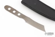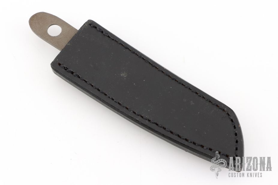 This boot knife by Larry Harley features a bead blast finished blade with .064" blade stock and .818" blade depth, integral construction. Comes with a black leather boot sheath. Has a few light scratches, otherwise excellent condition. #2267 on blade.