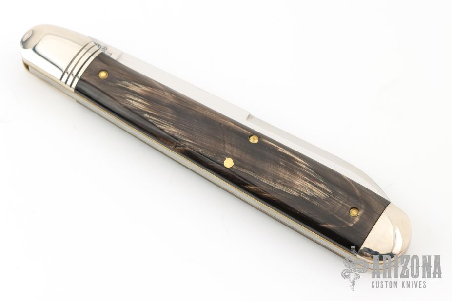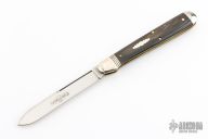 This knife by Great Eastern Cutlery features a polish finished blade with a nail nick. The handle has pinched nickel silver front/rear bolsters and escutcheon, brass liners, buffalo horn covers, steel spring. Has half-stop. Comes with original tube and COA. Excellent condition. Only 25 made with the spear blade.