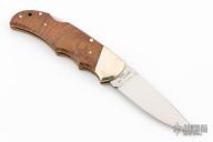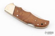 This Model 108 Limited Edition knife by Browning features a mirror polished blade with nail nick. The handle has nickel silver bolsters, exotic quince wood scales, brass liners and stainless backspacer. Comes with original box, papers, brown leather sheath and zippered case. 1 of 2000. Excellent condition.