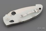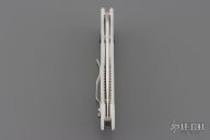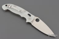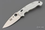 This Manix 2 by Spyderco has a satin finished drop point blade with thumbhole and notched thumbrest. Handle has glow in the dark scales over stainless steel liners, 2-way reversible tip up stainless steel clip, and lanyard tube pin. Comes with original box and papers. New condition.