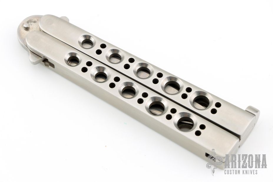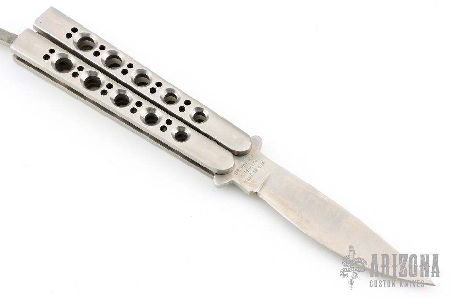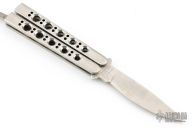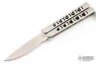 This Model 68 Bali-song by Pacific Cutlery features a satin finished drop point blade. The handle is comprised of a skeletonized, integrally constructed steel frame with T latch on pommel. Includes original box, and belt sheath. Has a couple light scratches, otherwise Excellent condition.