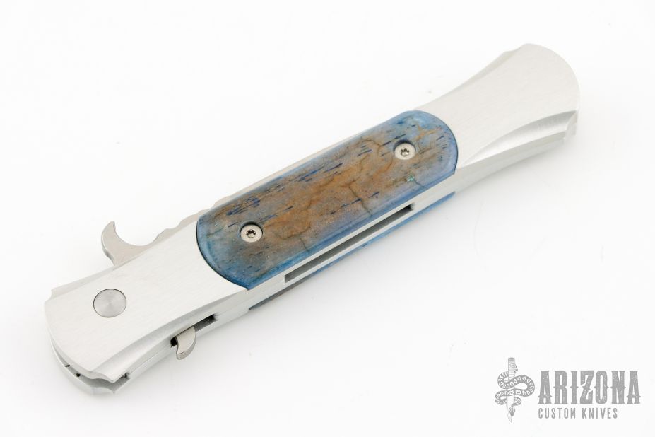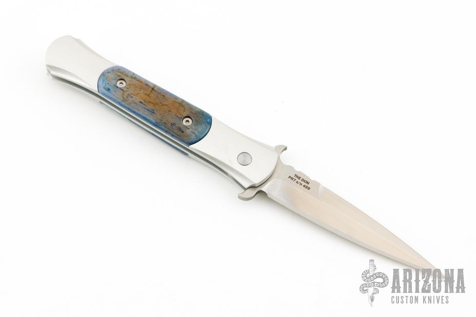 Classic styling, modern 3D CNC Machining, and unequaled craftsmanship have all come together perfectly for our newest auto knife – THE DON. The frames and inlays for each DON are completely 3D machined, curved and fluted for a completely custom feel. Super smooth coil spring action! Because of the complex machining and amount of detailed hand work involved with the DON, their production will be very limited each year.