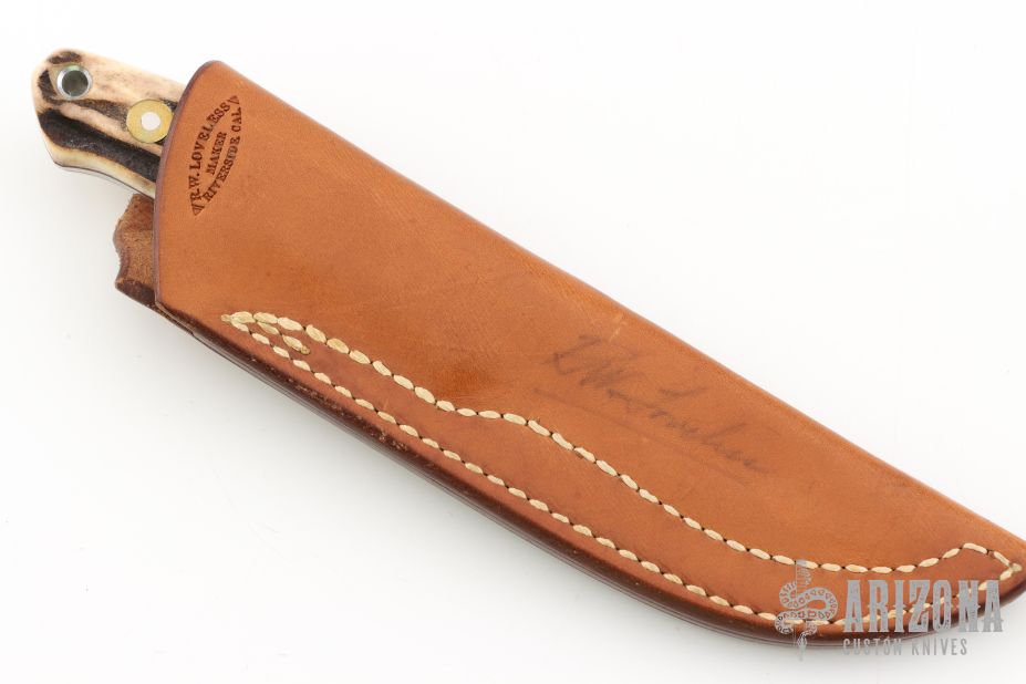 Robert Waldorf Loveless (January 2, 1929 – September 2, 2010), a.k.a. Bob Loveless or RW Loveless, was an American knife maker who designed and popularized the hollowground drop point blade and the use of full tapered tangs and screw-type handle scale fasteners within the art of knifemaking. A hunting knife on the table of nearly any American knifemaker today will show the influence of knifemaker Bob Loveless. In the beginning he turned the knife industry on its ear, and made modern handmade knifemaking possible. He was at the beginning of everything: The Knifemaker’s Guild, drop point hunters, high quality steels, custom designs, How to Make Knives books, the Japanese Knifemakers Guild, the rise of Japanese cutlery manufacturers, utilizing handmade designs for American manufacturers. You name it and Loveless has had a hand in it. He is cited by other knifemakers and collectors as one of the most innovative custom knife makers in the world. Inducted into the Blade Magazine Cutlery Hall of Fame in 1985.
