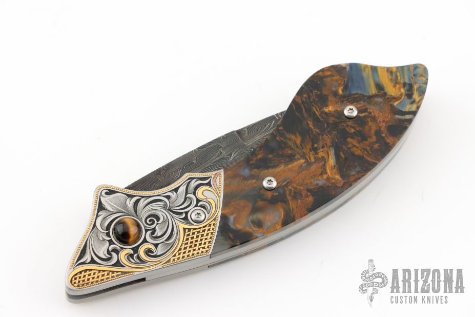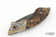 After Buster’s passing, I had a strong desire to make knives and continue to make the great art knives that I had worked on and had a unique partnership with for the past 20 years. A past student of Buster’s, Curt Erickson, had offered to help teach me to grind the way Buster had taught him. He was the only person Buster had really tutored in knifemaking and I graciously accepted his offer. After working with Curt and with his help I won the Buster Warenski award for the best Art Knife at the New York knife show in February 2006. We were married in 2006, and now work together in a new and exciting partnership in knifemaking. There will be many fabulous knives in our future together as we are dedicated to making some of the best art knives possible.