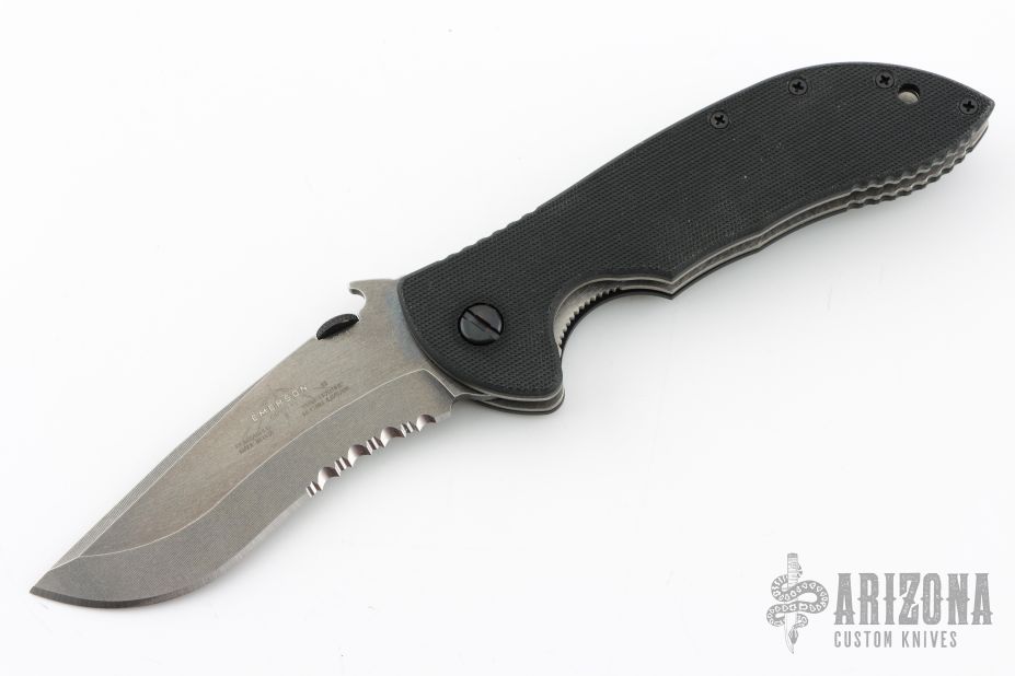 'The Emerson Commander is a 21st century combination of design, materials, performance, and razor sharpness. This knife along with other Emerson Knives, sets the new standard for the cutlery industry and continues to push the design and performance envelope for cutting tools well into the 21st century.' 'The Commander knife-battle tested and proven-incorporates some of the most advanced ergonomics ever featured on a folding knife. The knife, already in use with elite armed forces, European Military strike teams and NATO Counter-Terrorist units throughout the world was chosen by the U.S. Navy SEAL teams for issue to special units within the Naval Special Forces Units. Because of its ruggedness, it has become a favorite of hunters, outdoorsman and adventurers the world over. It features the patented 'wave shaped opening feature.'