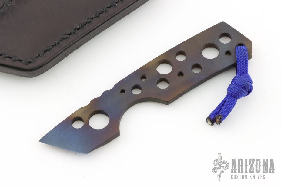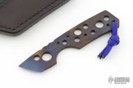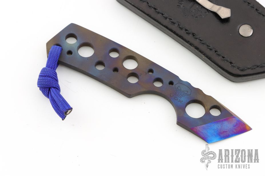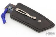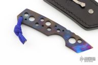 This Kiridashi by Vox Knives features an anodized titanium chisel ground blade with notched thumbrest, .145" blade stock and .879" blade depth, integral construction with lanyard hole at the butt. Comes with kydex sheath and a black leather sheath by Lifter's Leather. Excellent condition.