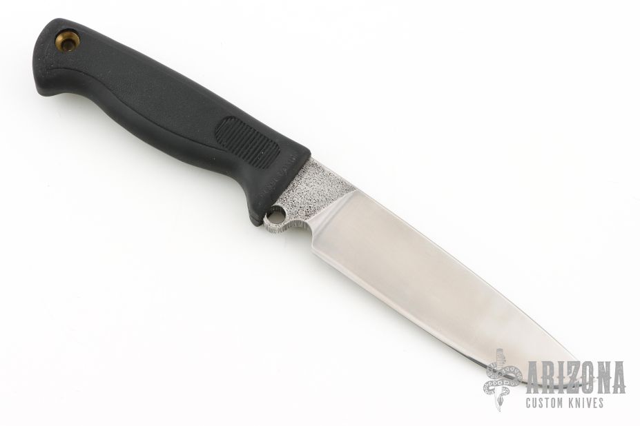 This Basic 5 by Busse features a satin finished drop point blade with .254" blade stock and 1.216" blade depth, hidden tang construction with rubber handle. Has some light scratches, otherwise excellent condition.