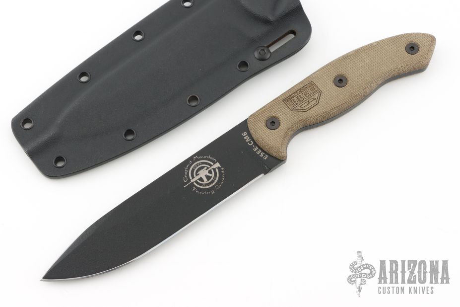 Designed by Terrill Hoffman, the ESEE-CM6 is the joining of tactical and practical making this knife at home in the woods or on the battlefield. The 5 7/8″ drop point blade of the CM6 is sized to complete the hardest task without adding excessive weight to your gear load. From hog hunting to defensive carry, the sharpened swedge enhances penetration, while the full sized canvas Micarta handle is shaped to provide a secure and stable grip.