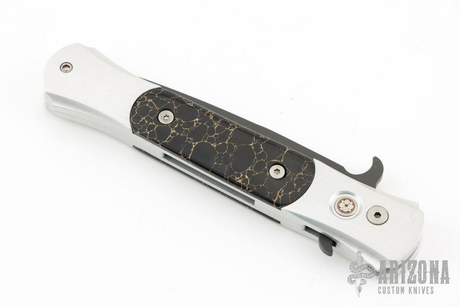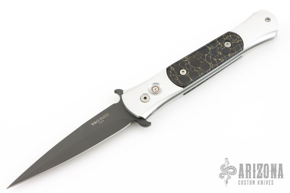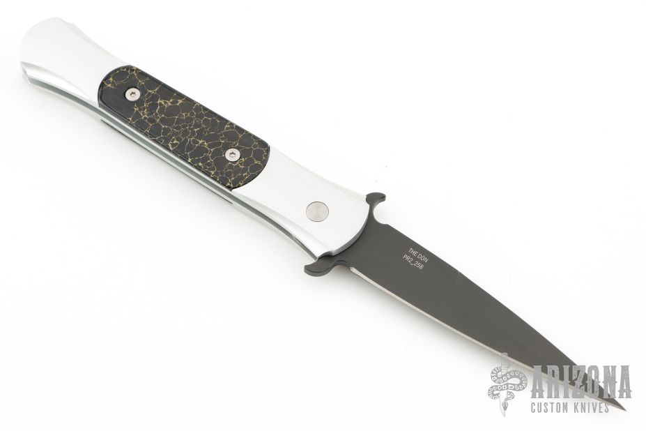 "Classic styling, modern 3D CNC Machining, and unequaled craftsmanship have all come together perfectly for our newest auto knife – THE DON. The frames and inlays for each DON are completely 3D machined, curved and fluted for a completely custom feel. Super smooth coil spring action! Because of the complex machining and amount of detailed hand work involved with the DON, their production will be very limited each year."