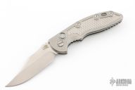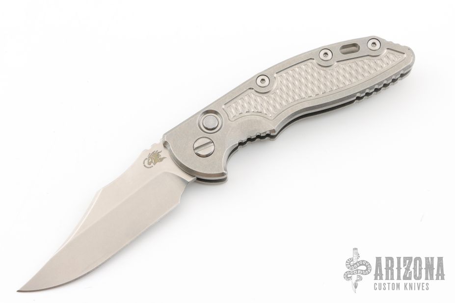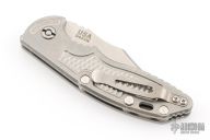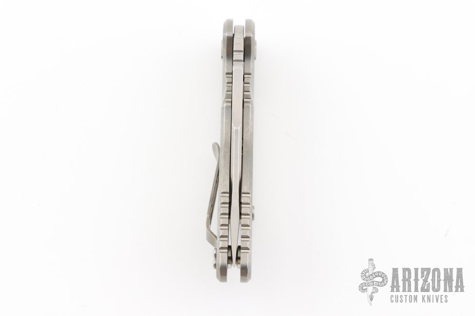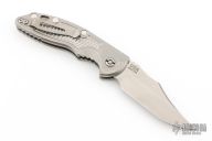 This XM-18 Flipper by Rick Hinderer Knives features a 3.5" stonewashed finish blade, notched thumbrest and flipper.  The handle has a stonewashed titanium frame with a matching tip up pocket clip.  Comes with original Hinderer box and card. Excellent condition.