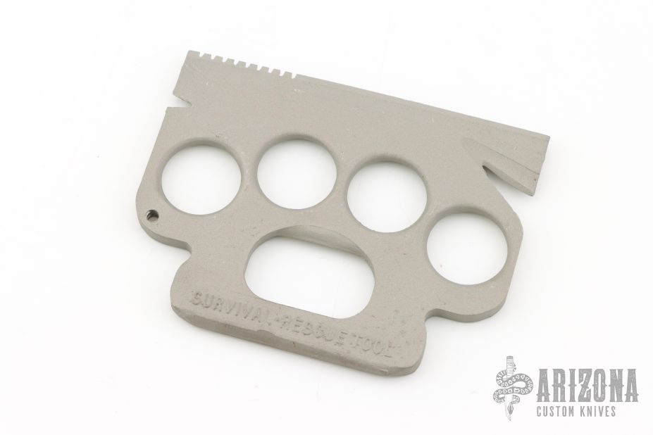 The present invention relates to a survival hand weapon of the nonfirearm type comprising an elongated blade having a beveled cutting edge formed along the forward edge thereof, a plurality of finger receiving openings extending from the edge of the elongated blade opposite the cutting edge for receiving a plurality of fingers from the users hand, and a palm rest extending fromthe plurality of finger openings for extending between the fingers and the palm of the users hand which acts to transfer the shock associated with a particular blow to the palm of the users hand.