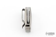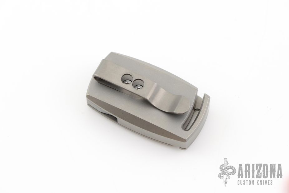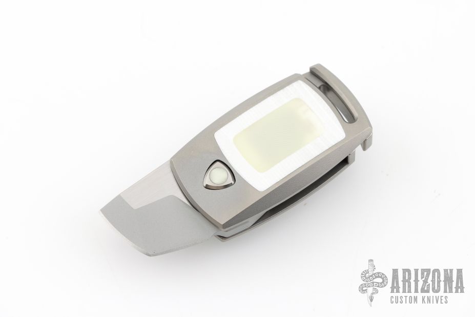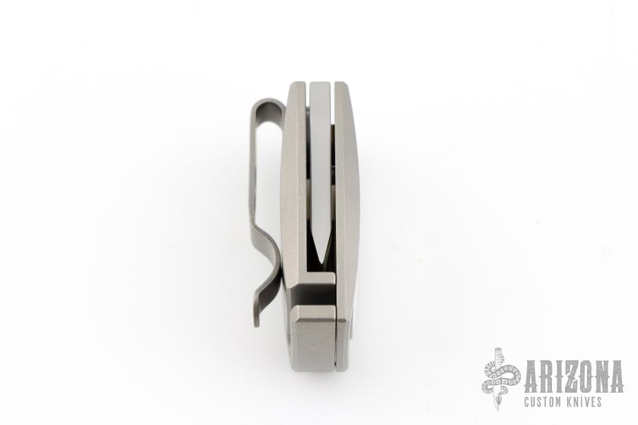 The handle is precision-machined from titanium, offering lightweight strength in a sleek silhouette. It features a removable pocket clip, and for those who prefer clipless carry, a matching filler tab is included. A glow-in-the-dark inlay in the pivot area on the front side adds functional flair—easy to find in low light, hard to ignore in any setting.