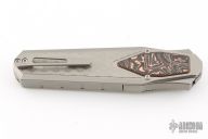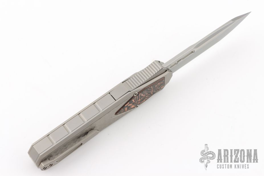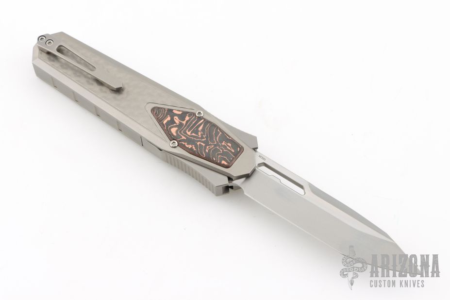 - Handle: Titanium handle with a ceramic sandblasted finish and a copper carbon fiber inlay.