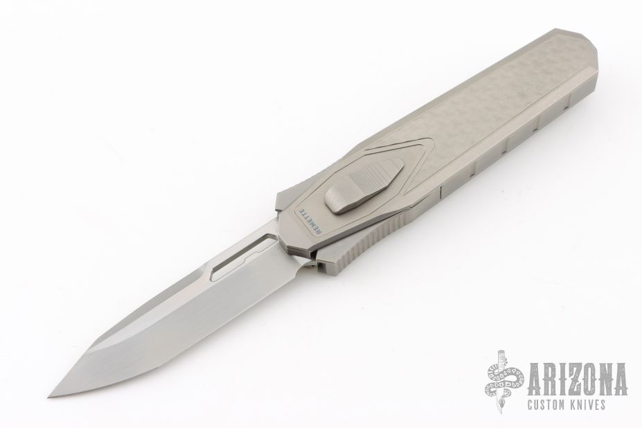 Sleek yet powerful, much like its namesake, the REMETTE RT-Swordfish is a novel yet intuitive gravity knife that combines functionality and fidgety goodness. The RT-Swordfish packs multiple features into a relatively minimalist profile. The front of the knife contains a sliding lock that, when pushed, allows the blade to fall freely with gravity or a quick flick of the wrist. Releasing pressure from this slide ensures the blade stays either deployed or retracted. The titanium pocket clip and handle provide exceptional durability and give the knife a good weight without being too heavy. A slim leather carry case accompanies the knife and offers another convenient and classy way to carry it. The RT-Swordfish is a great gravity knife companion that is not only addicting to use but also has solid tolerances with very minimal blade play.