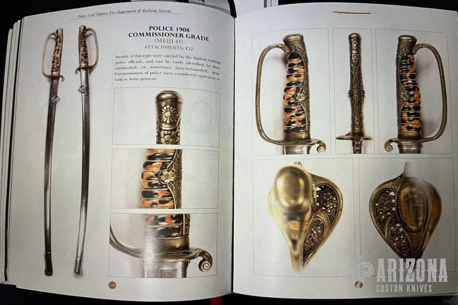 This Antique WWII Japanese Police 1908 Commissioner Grade Kyu-Gunto Sword was photographed for, and is the actual sword in the John Plimpton book "Swords of the Emperor - A Guide to Identification of Imperial Japanese swords 1873-1945" appearing on pages 338 &339.
