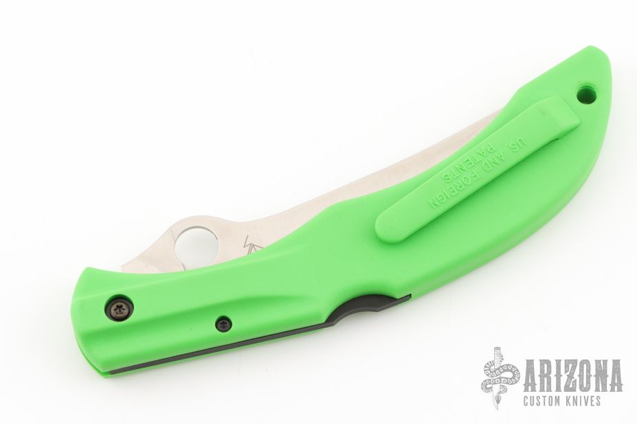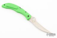 This Spyderco Catcherman eatures a satin finished upswept partially serrated blade with thumbhole, .067" blade stock. The handle is green FRN with integral tip up clip, lanyard hole at the butt. Nice lockup and blade seating. Excellent condition. Comes with original box and papers.