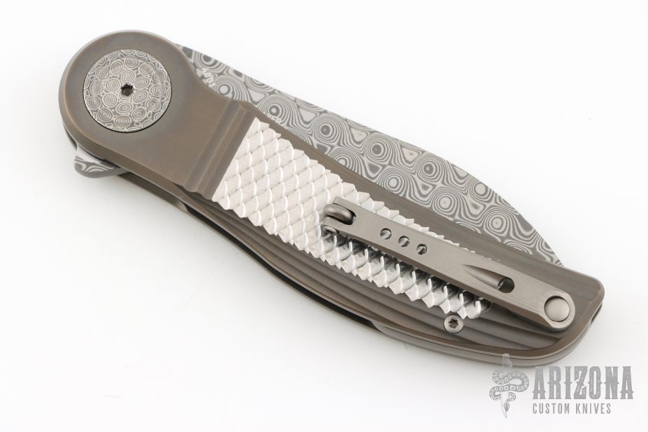 The Monument is a design by Michael Walker, the inventor of the liner lock, that is the embodiment of excellence. The name comes from the many monuments around his hometown in Taos, New Mexico. Some of its defining features are the Damasteel Bluetongue patterned pivot, the monochromatic titanium handle, and the Rose Damasteel blade. Created by a true master knifemaker, this knife is the perfect tool and collector's piece for any knife lover!