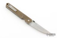 This Lucas Burnley Kwaiken Linerlock Folder has an acidwashed AUS-8 upswept blade with thumb disc. Handle is green canvas micarta over stonewashed stainless steel liners. Stonewashed tip up stainless steel clip. Lanyard hole. Comes with original box and papers. Excellent condition. #2038