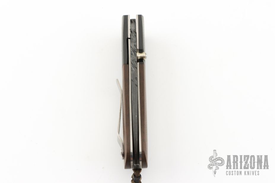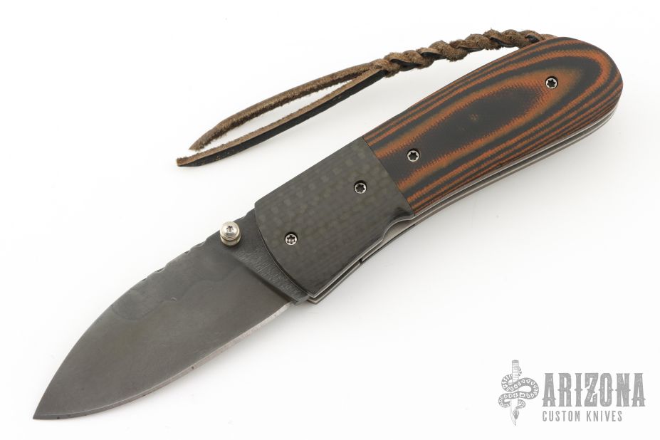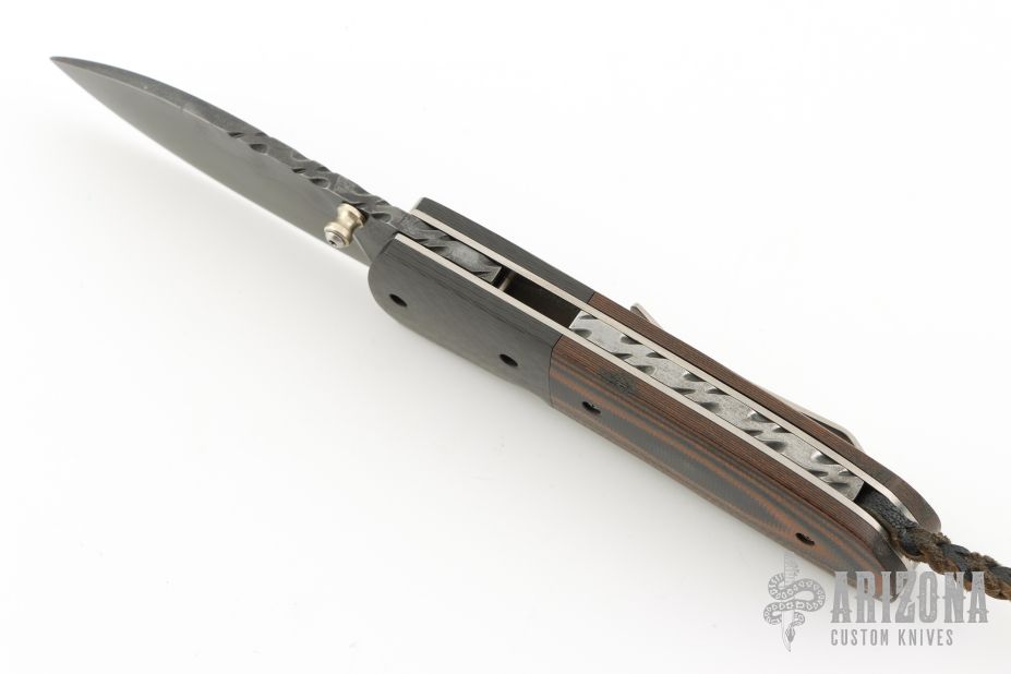 This Bumble Bee Linerlock by Mark Nevling of Burr Oak Knives features a blued blade with hamon, a single thumbstud and a fileworked spine. The handle has carbon fiber bolsters, black/orange G-10 scales, titanium liners, fileworked W2 backspacer, tip up titanium clip. Comes with a zippered pouch and COA dated 9/25/25. New from maker!