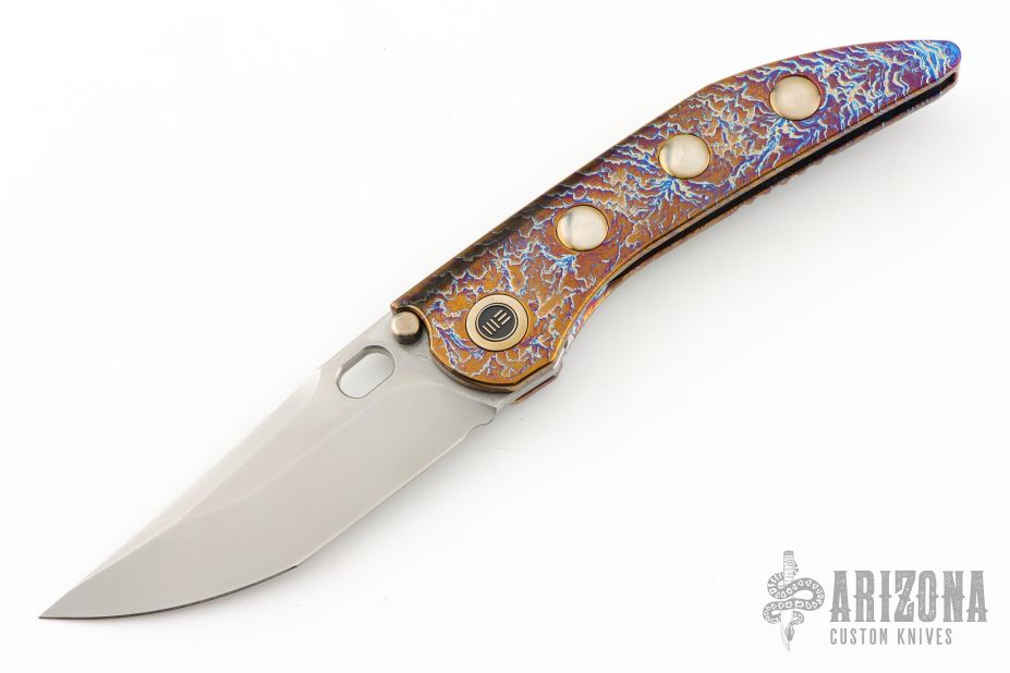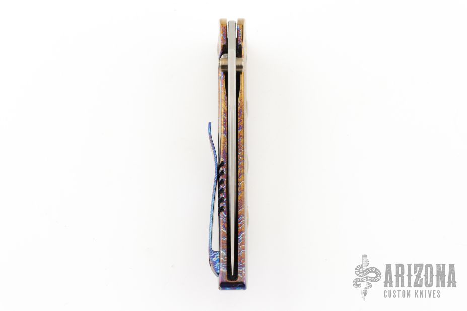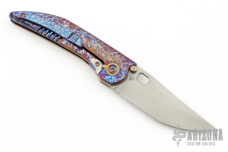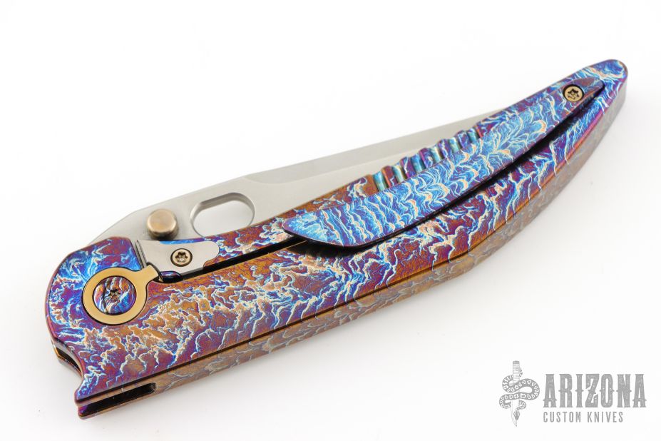 - Handle: Flamed integral titanium handle with gold titanium inlays.