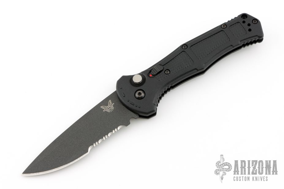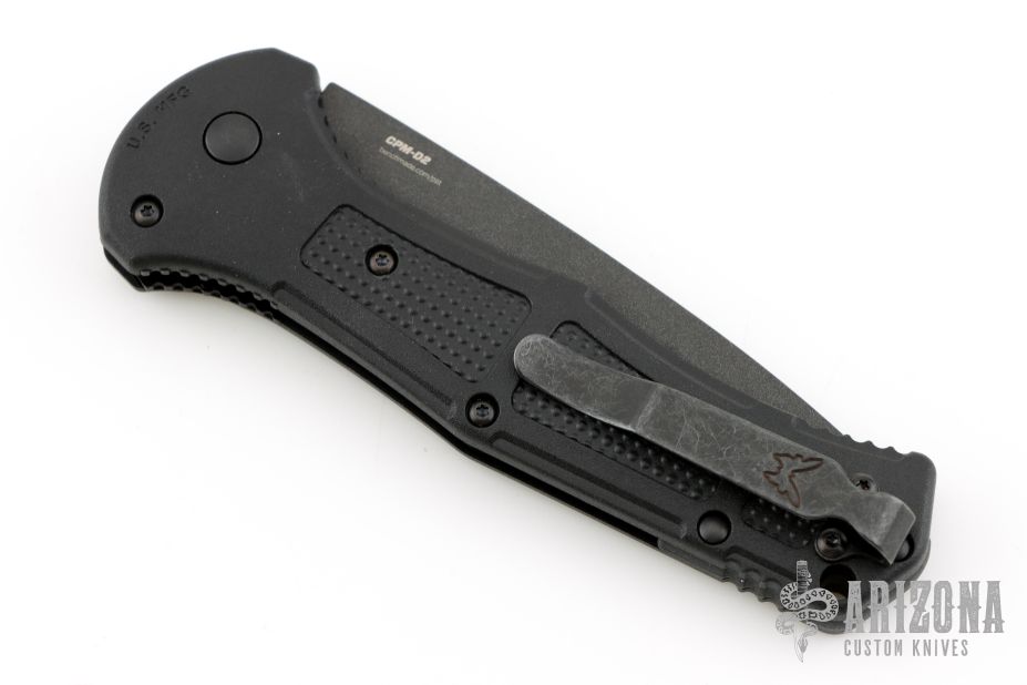 An explosive design, bound to take the battlefield by storm. The 9070SBK Claymore is a slender push-button powerhouse, packed full of hidden features and inspired by one of the most notorious directional mines. Incorporating this air-hardening tool steel to Benchmade’s portfolio of premium materials, the Claymore blade has been crafted from CPM-D2 to provide ample toughness and edge retention. Manufactured in the USA, the Claymore has set the standard for closed break strength making this Benchmade's toughest folder to date. Includes the original box and papers. Excellent condition.