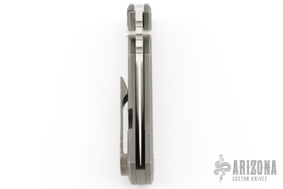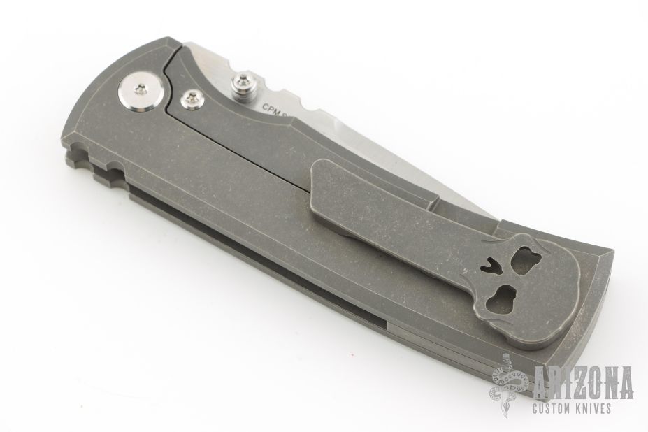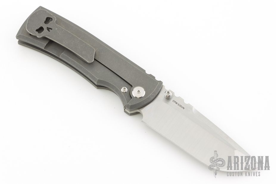 This Chaves Ultramar Redencion Tanto features a satin finished blade with the Chaves logo. The handle is made up of tumbled titanium, skull pocket clip (positioned for tip up carry), and a matching titanium backspacer. Blade is centered when closed, and locks up with no play. This piece is in excellent condition with no signs of use or carry. Comes in the original packaging.