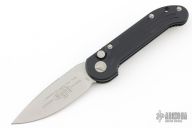 This LUDT side opening automatic by Microtech has a stonewash finished blade with a standard edge and a black aluminum frame. Stainless steel clip. Dated 07/2018 and serial number 09109. Comes with original box and papers. Excellent condition.