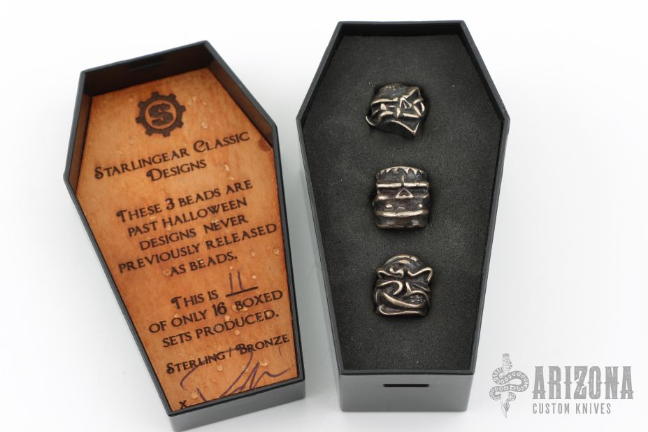 Starlingear Classic Designs - These three Past Halloween Designs Never Previously Released as Beads. This is #11 of 16 boxed sets produced. Sterling silver and Bronze. Excellent condition. Comes with coffin presentation box and COA inside the box.