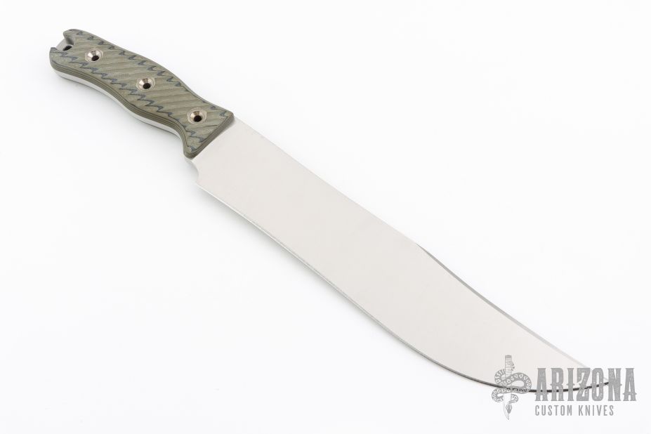 This Mountainmandu by Swamp Rat Knives features a "BIG" finished SR77 blade, full tang construction with .210" blade stock and 1.986" blade depth. The handle has black/green G10 scales with lanyard hole at butt. Excellent condition.