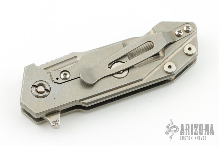 This Half Track from Hinderer Knives features a stonewash finished blade with swedge, fullers, notched thumbrest and flipper. The handle has a stonewashed titanium frame and a titanium clip that is positioned for tip up, right hand carry. There are some light scuffs on the knife, but it is in otherwise excellent condition.