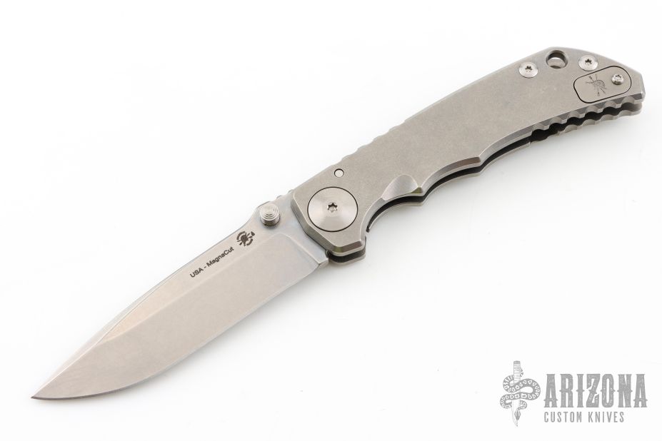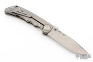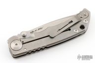 This framelock folder by Spartan Blades features a stonewashed drop point blade with dual thumbstuds and a notched thumbrest. The handle has a stonewashed titanium frame with tip up titanium clip. Has nice detent, lockup, and blade seating. Excellent condition. Comes with the original box. Excellent condition.