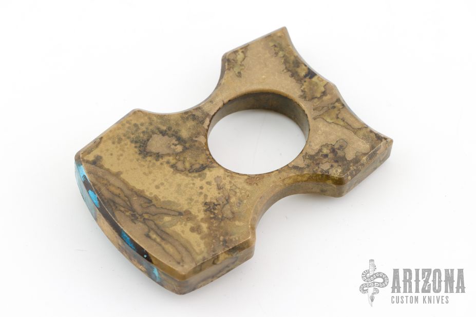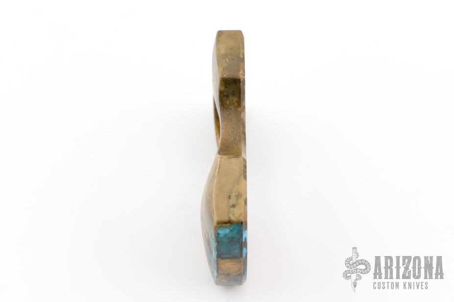 This Brass Knuckle by MG Customs is made of brass with nice contouring, forced patina finish, the bottom is rounded to fit into the palm better, .561" thick. New from maker.
