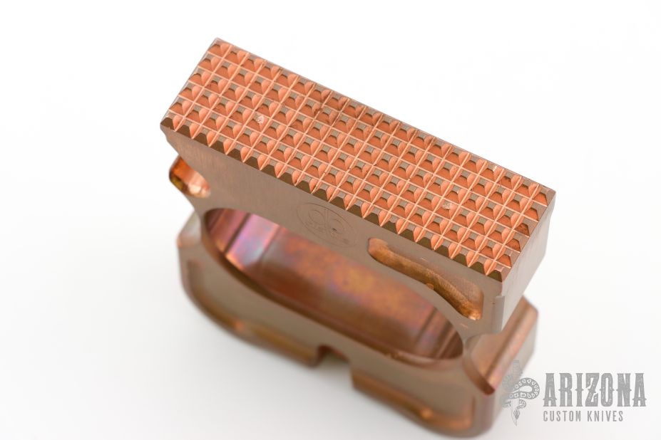 This Tenderizer Copper knuckle by DB Customs is .750" thick. Has some light scratches and patina, otherwise excellent condition.