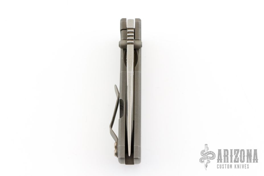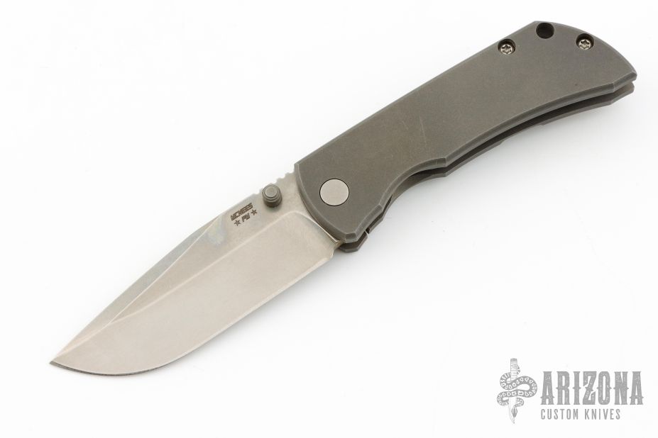 This MAC2 features a stonewashed drop point blade with dual thumbstuds and a notched thumbrest.  The handle features a bead blasted titanium frame with a matching tip up pocket clip. Comes with COA dated 2021. Has some scratches on the body, great condition otherwise.