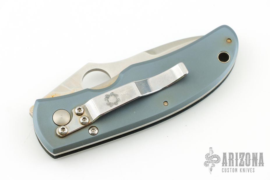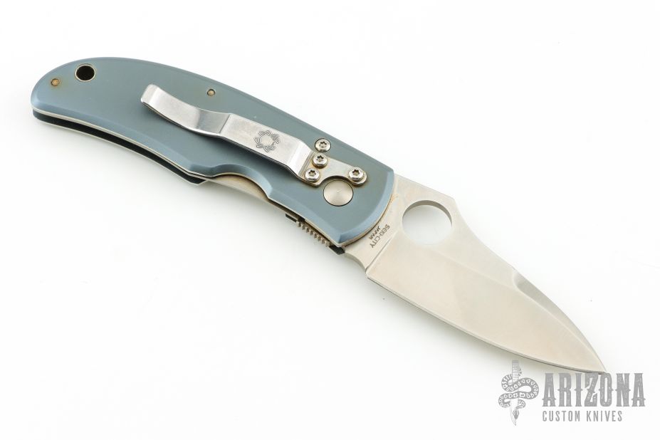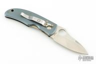 Great little linerlock designed by Michael Walker, produced by Spyderco. Satin blade and almite scales. Japan's version of the ultra-performance powderized steels dominating our knife industry today is VG-10. The hollow-ground blade becomes part of an elite fraternity of exotic blade steels just beginning to be fully utilized and appreciated by knife users. Tip down carry clip. Strong lockup; nice detent and seating. Discontinued model. Has a few light scratches, otherwise excellent condition.