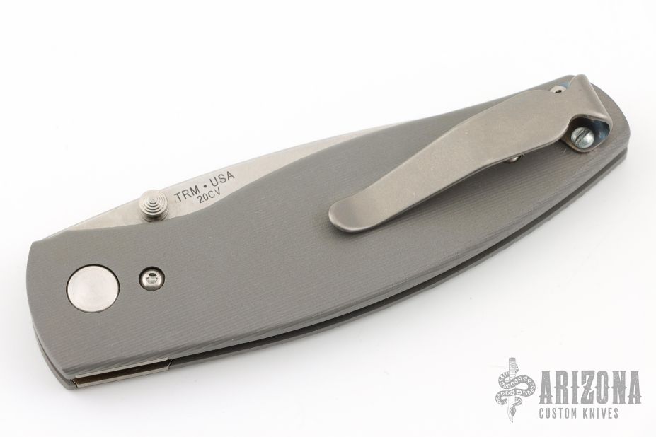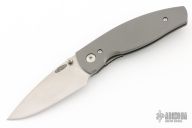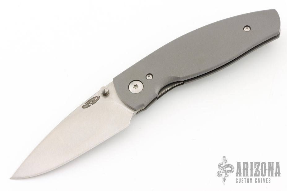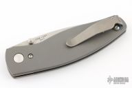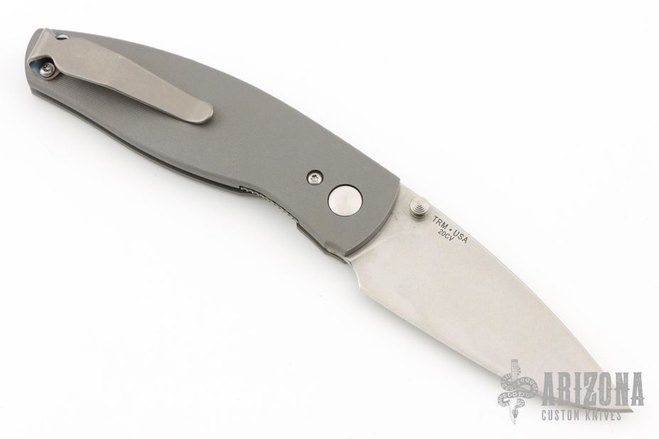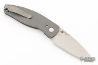 This Neutron Linerlock by Three Rivers features a stonewash finished blade with dual thumbstuds. The handle has milled and blasted titanium scales, titanium liner with a titanium tip up reversible clip. Nice detent, lockup and blade seating. Has a few light scuffs, one of the clip screws is not original, otherwise good condition.