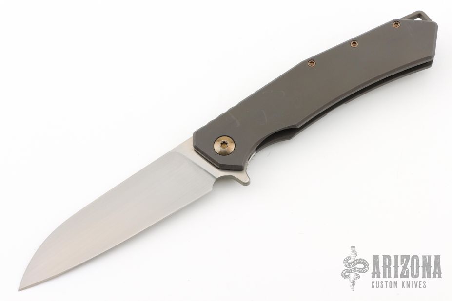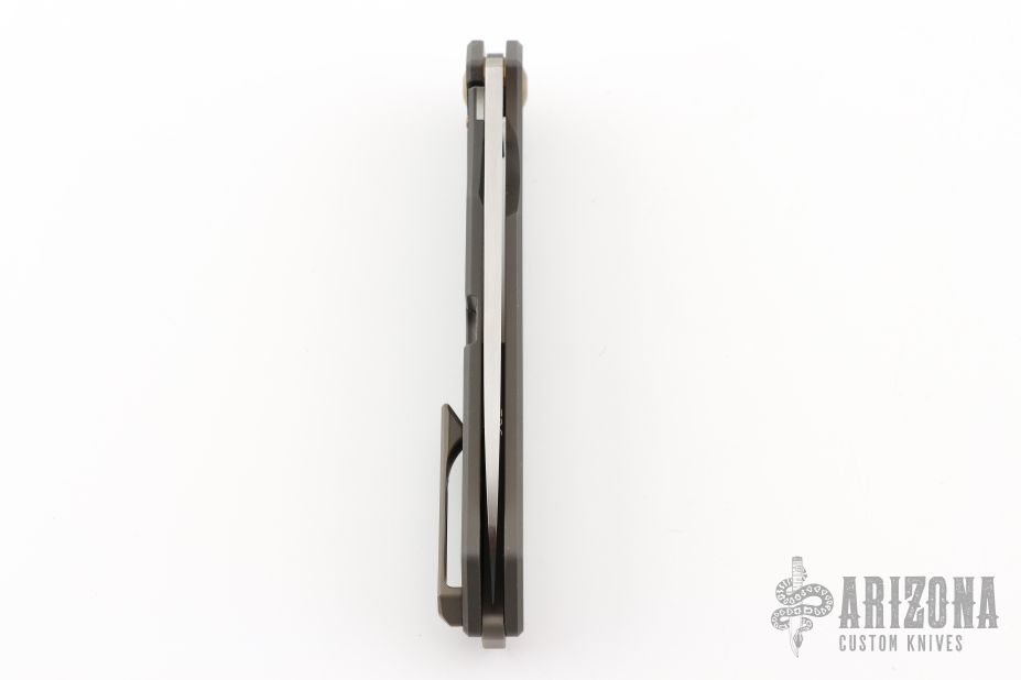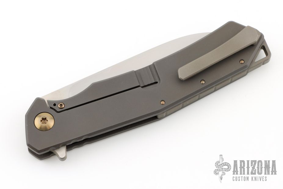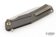 This Sierra from Burger Knives features a hand rub satin finished drop point blade with notched thumbrest and flipper tab. The handle is comprised of a bead blasted and milled titanium frame with titanium tip up clip and backspacer with lanyard bail. Includes COA dated March 2022. Has a few light scuffs, otherwise excellent condition.