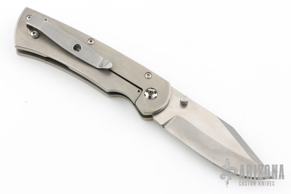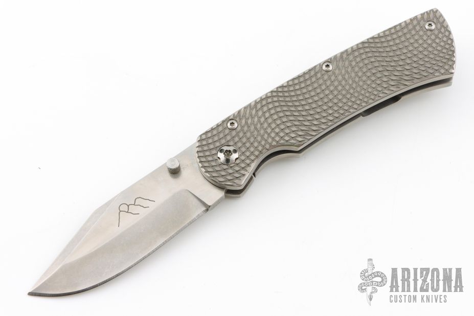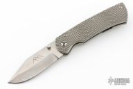 This "Beast" frame-lock folder by Three Sisters Forge features a tumbled clip point blade with single knurled thumbstud. The handle has a milled and tumbled titanium frame with stainless steel clip, tip up carry. Nice detent. Has a couple light scratches on the body, excellent condition otherwise.
