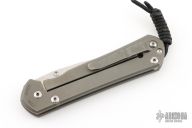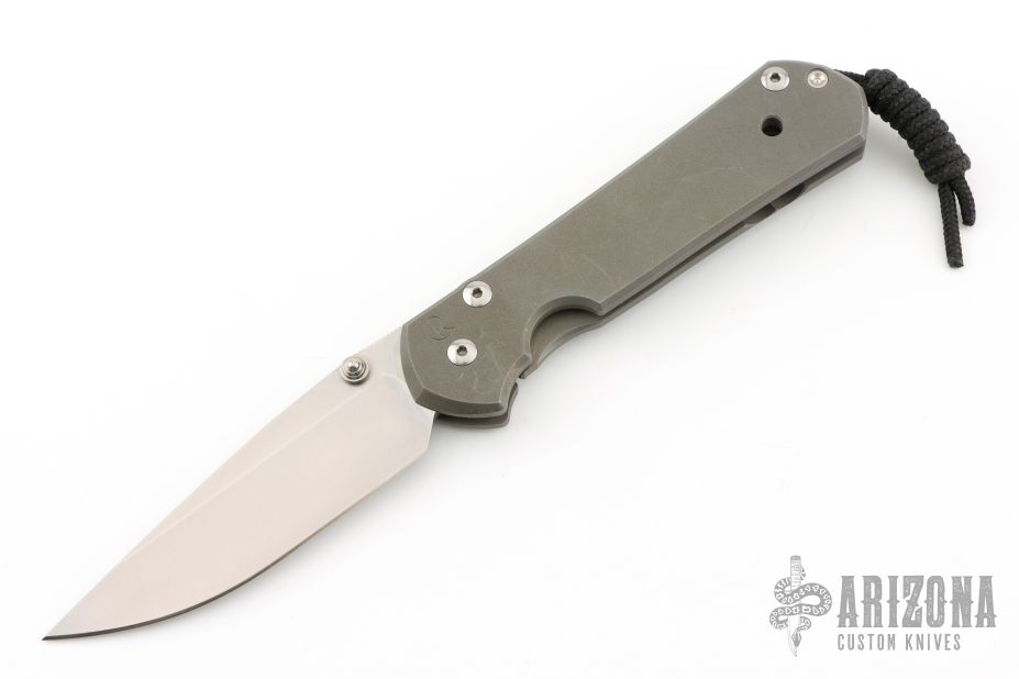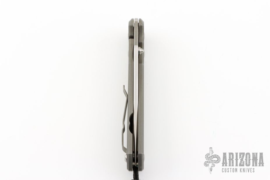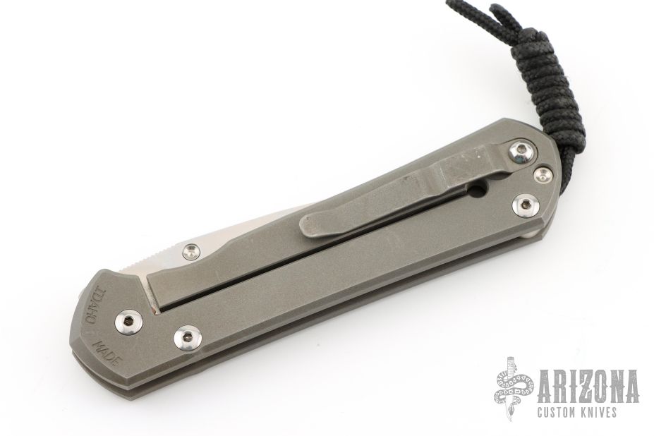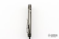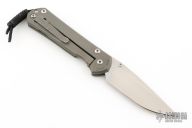 This Large Sebenza 21 by Chris Reeve features a stonewashed blade with a single thumbstud. The frame is bead blast finished titanium with matching tip up clip. Nice detent, lockup and blade seating. Has some scuffs and scratches, otherwise good condition.