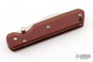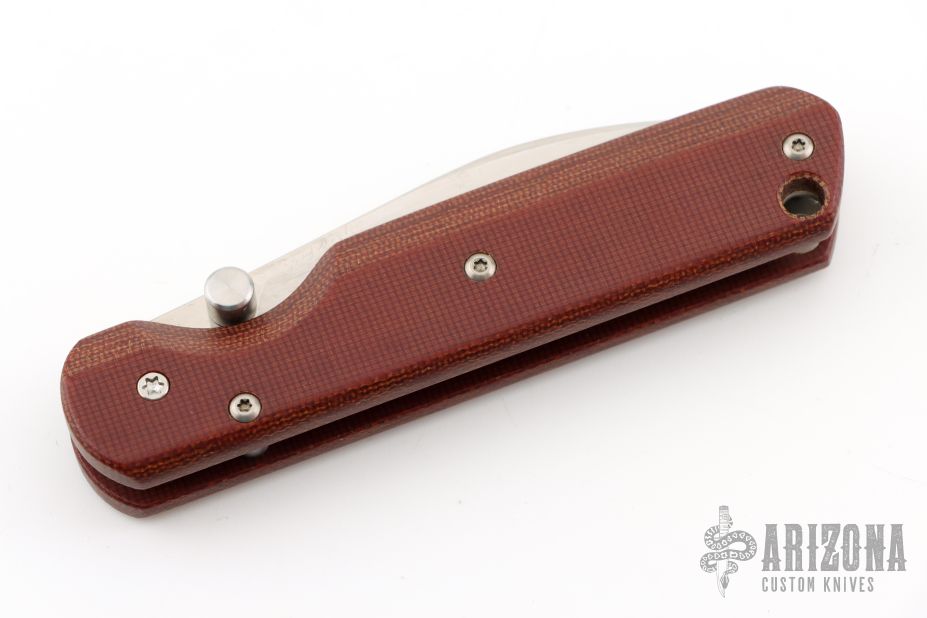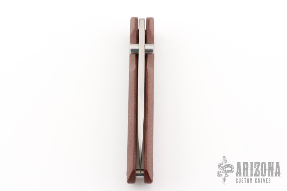It has a hand rubbed, flat ground CPM-MAGNACUT blade and some nice natural canvas micarta scales.