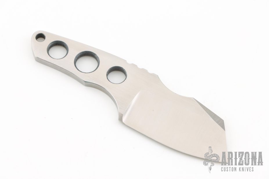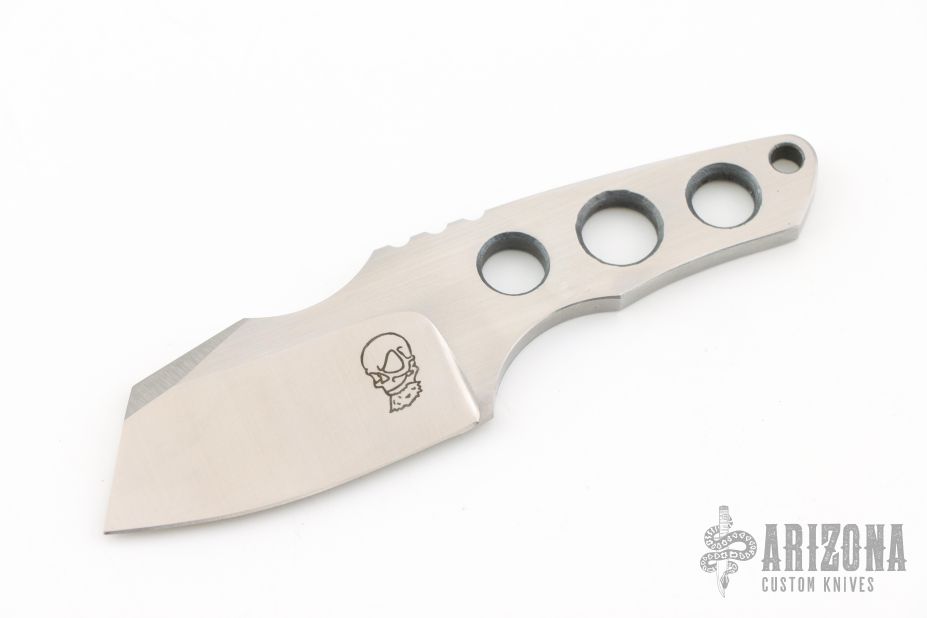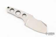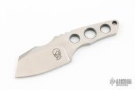 This small fixed blade from Steve Karroll features a satin finish with notched thumbrest, .155" blade stock and 1.067" blade depth, full tang construction. The handle has holes that could easily accept a paracord wrap or lanyard. Excellent condition.