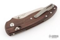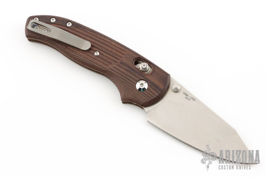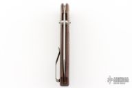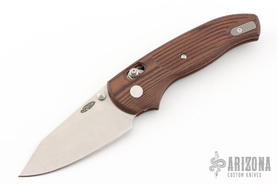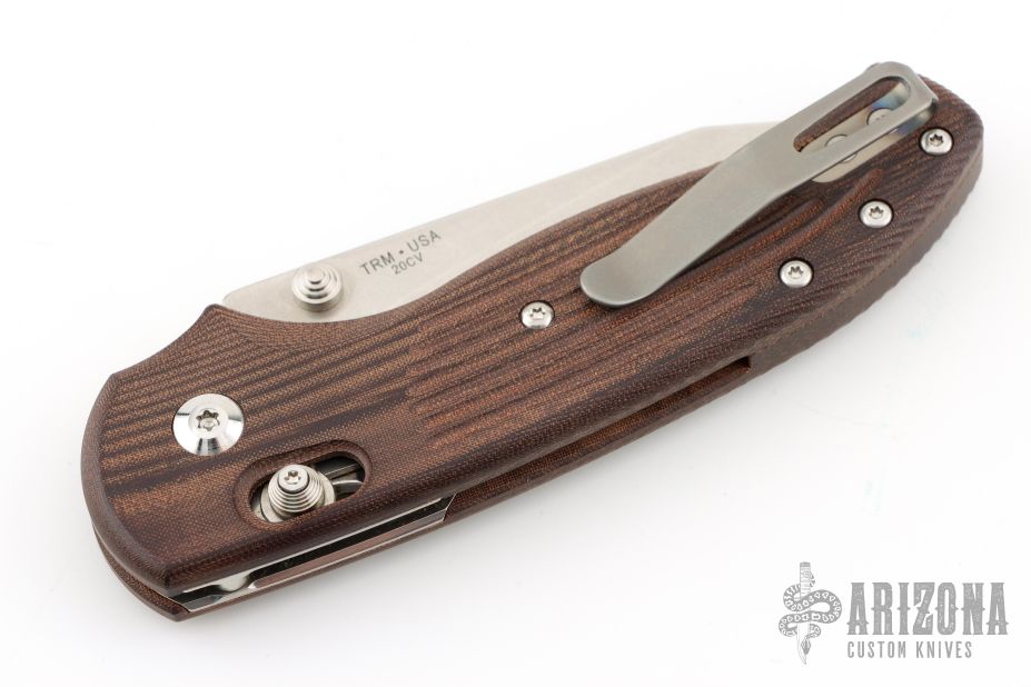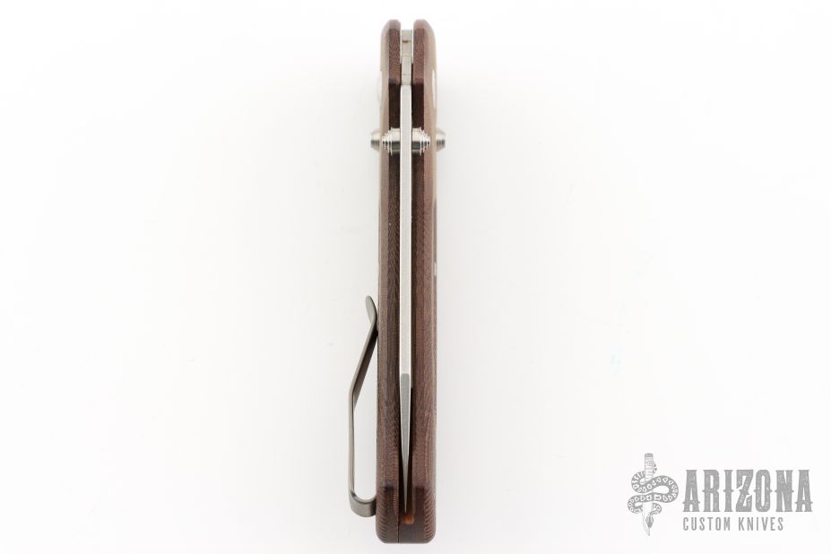 This Shadow River lok by Three Rivers features a tumble finished blade with dual thumbstuds. The handle has linen micarta scales, titanium liners and tip up reversible clip. Nice detent, lockup and blade seating. Excellent condition.