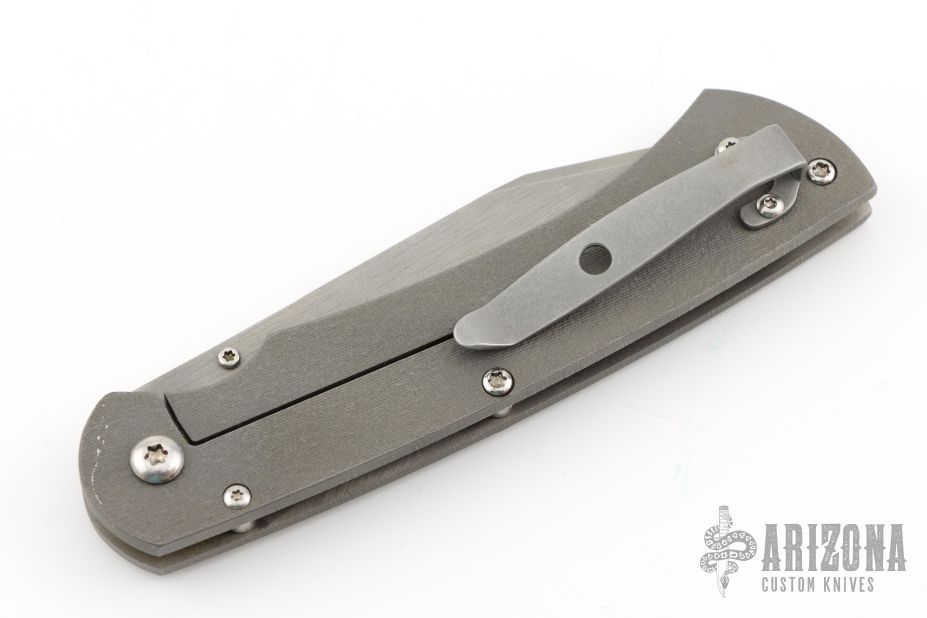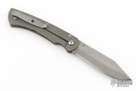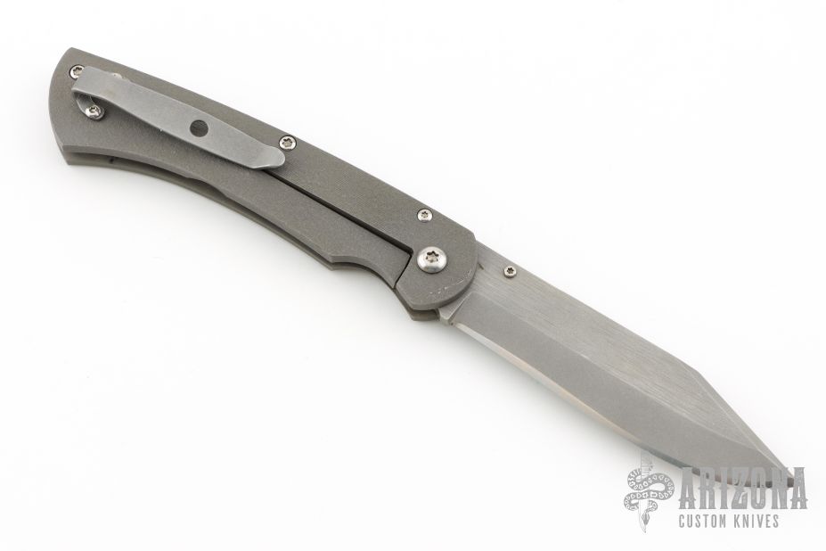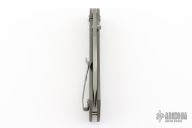 This Gen 1 "Beast" frame-lock folder by Three Sisters Forge features a tumbled clip point blade with single knurled thumbstud. The handle has a textured and bead blasted titanium frame with stainless steel clip, tip up carry. Nice detent, blade seating and lockup. Has a couple light scuffs and a scratch on the frame near the pivot, otherwise excellent condition.