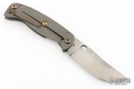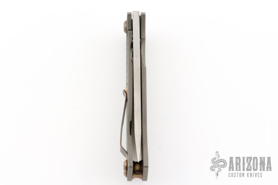 This Mini K2 framelock folder by Farid Knives features a satin finished D3 Steel blade with thumbhole, bead blast finish titanium frame, and anodized titanium clip. Nice detent, blade seating, and lockup. Has some scuffs/scratches, otherwise good condition.