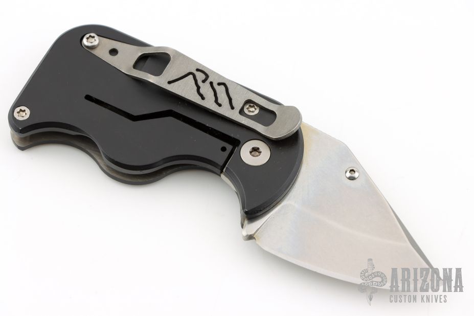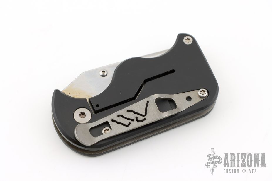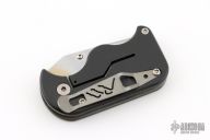 The Credit Card Tactical knife, or CCT, is a super small and slim folder that doesn't sacrifice strength for size. The framelock handle features water jet cut swirls on the front for great grip and looks. The pocket clip facilitates low profile carry. The clip point blade glides open smoothly with bronze bushings and locks securely.