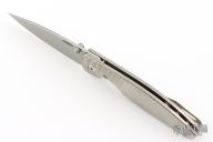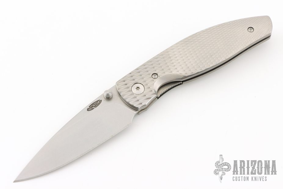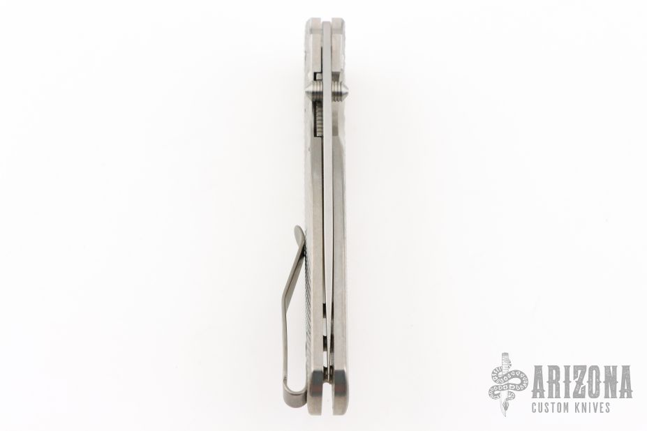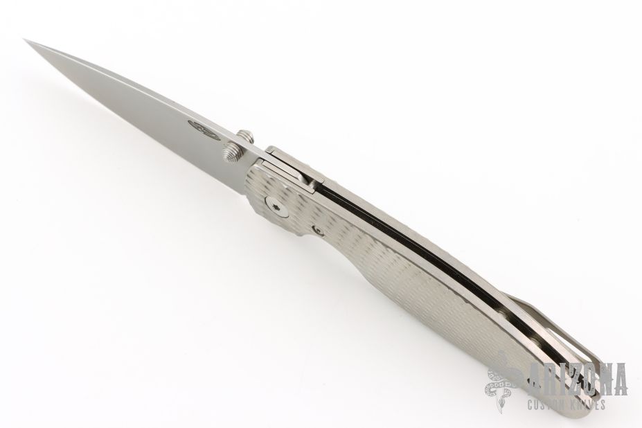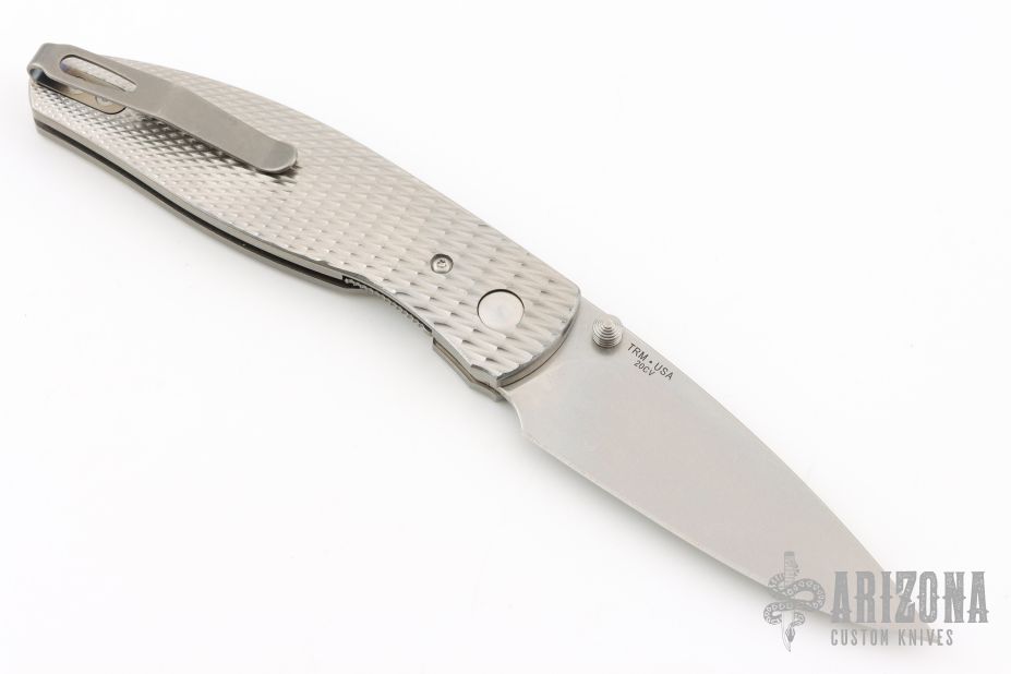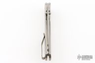 This Atom Linerlock by Three Rivers features a stonewash finished blade with dual thumbstuds. The handle has milled titanium scales, titanium liner with a titanium tip up reversible clip. Nice detent, lockup and blade seating. Excellent condition.