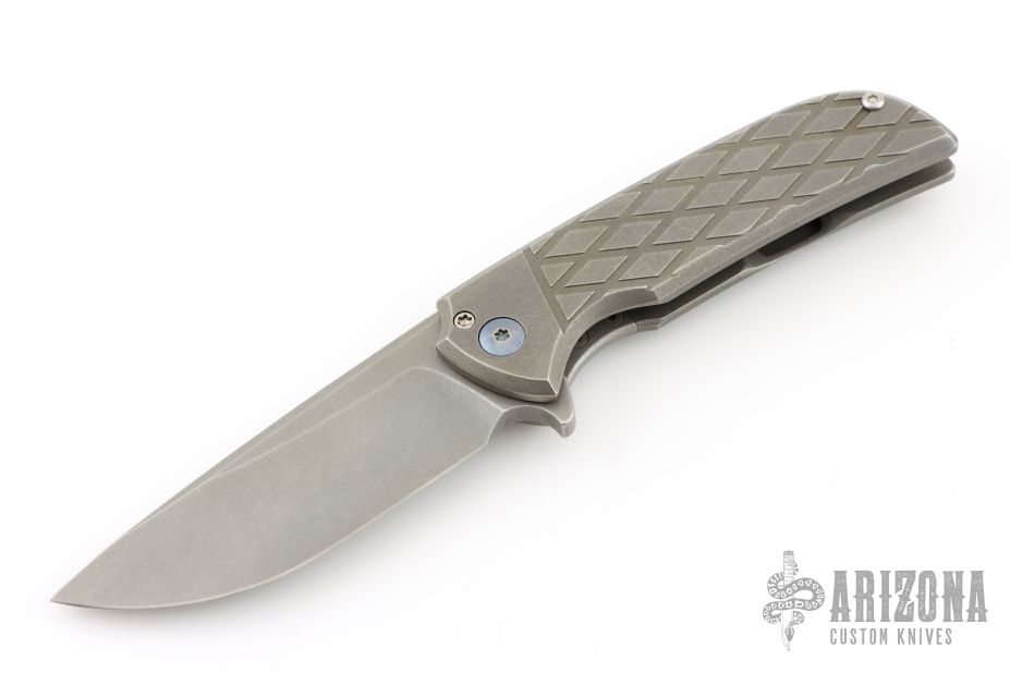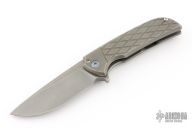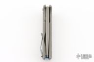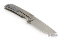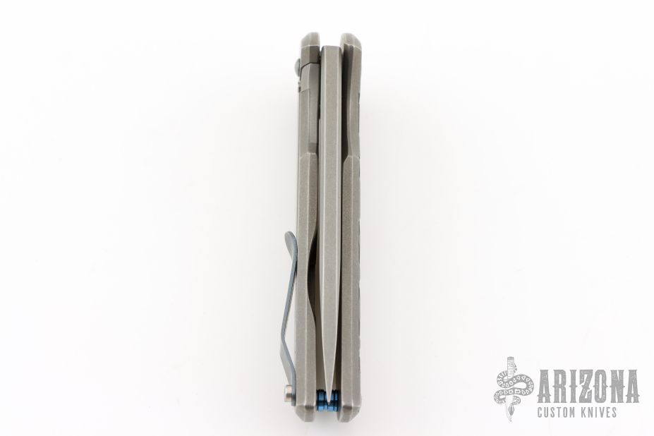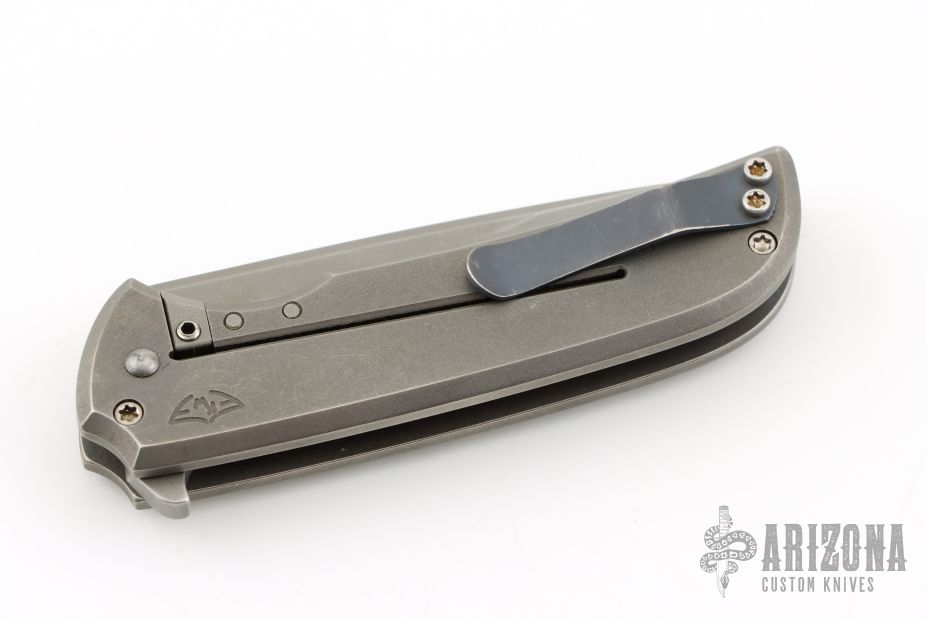 The N-TAC flipper from Ferrum Forge features a tumble finished blade with swedge and flipper. The has handle has a milled titanium frame with a anodized titanium tip up pocket clip. Has some scuffs and scratches, otherwise good condition.