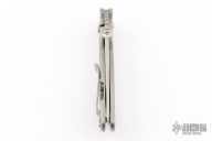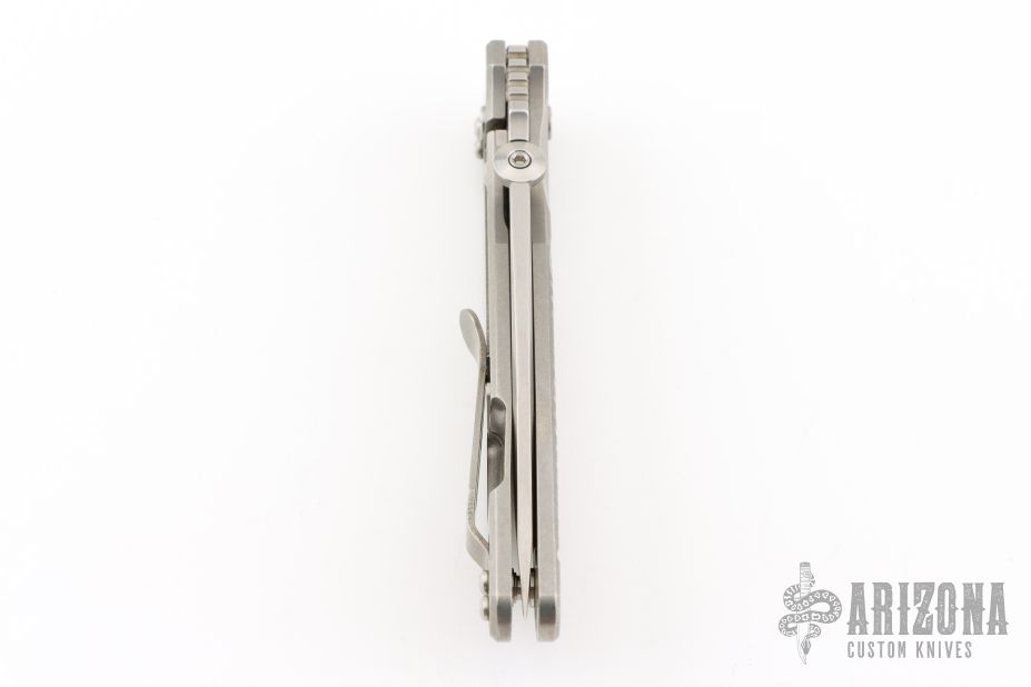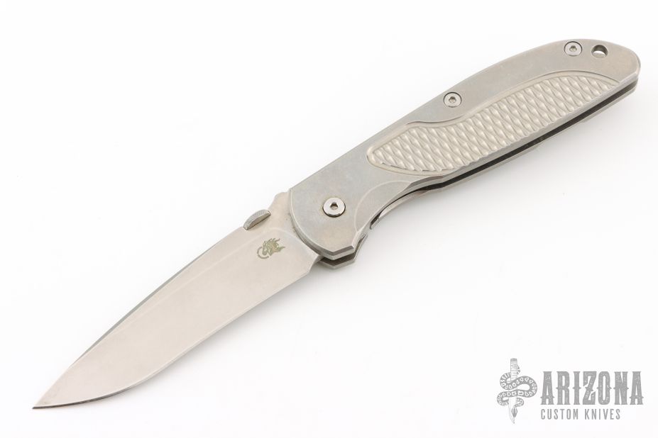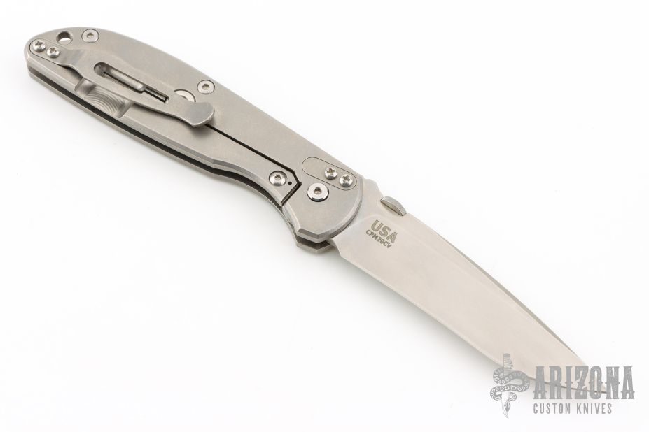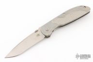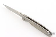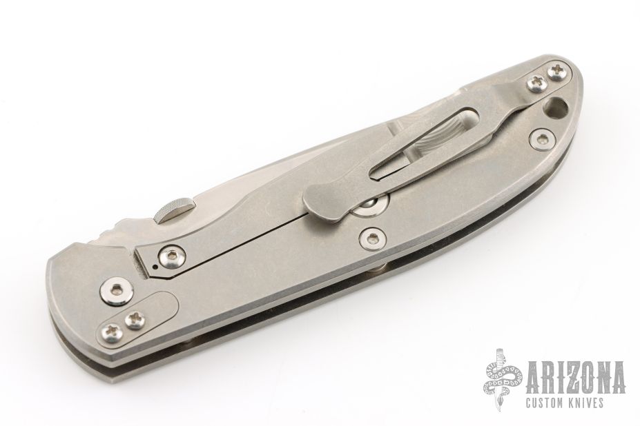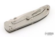 This Firetac by Hinderer features a drop point recurve stonewash finished blade with notched thumbrest and a thumbdisc. The handle has a stonewashed titanium frame, pocket clip is reversible. The circular thumb stud is removable; there is a lanyard hole at the butt. Excellent Condition.