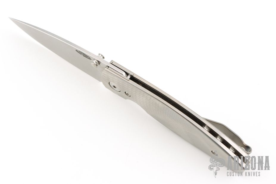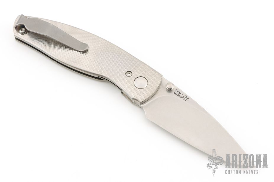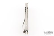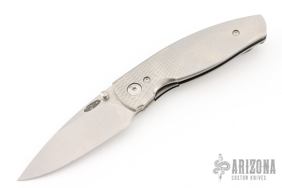 This Neutron Linerlock by Three Rivers features a stonewash finished blade with dual thumbstuds. The handle has milled titanium scales, titanium liner with a titanium tip up reversible clip. Nice detent, lockup and blade seating. Excellent condition.